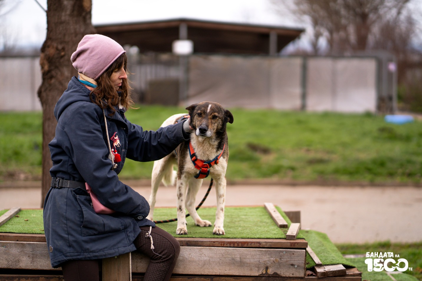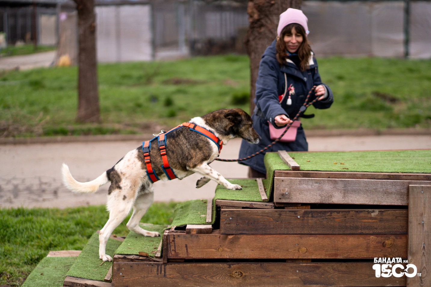 Еди ни посреща в клетката като повечето кучета в приюта, с вълнение и нетърпение. При поставяне на повод той остава спокоен. Когато излиза от клетката в началото се отдава на вълнението и започва да се дърпа напосоки да души. Но това лесно се коригира, поради факта, че Еди се вслушва в сигналите които му се подават от човека до него. Той лесно спира, когато спреш, сменя посоката и тръгва след повод. Изобщо разходките с куче като него биха били изключително приятни, както в позната така и в непозната натоварена градска среда.