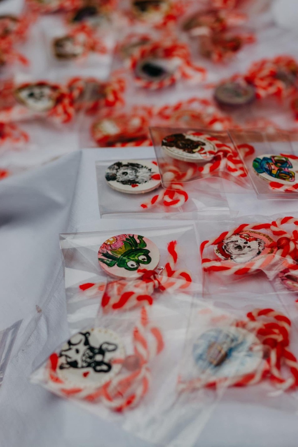 Сред разнообразието от мартеници ще намерите гривни със сладурски висулки (дааа не сме забравили и коткарите между вас!), супер сладки ръчно изработени керамични значки, любимите ни дървени значки с нашето лого и, разбира се, кучешките ни бандани.