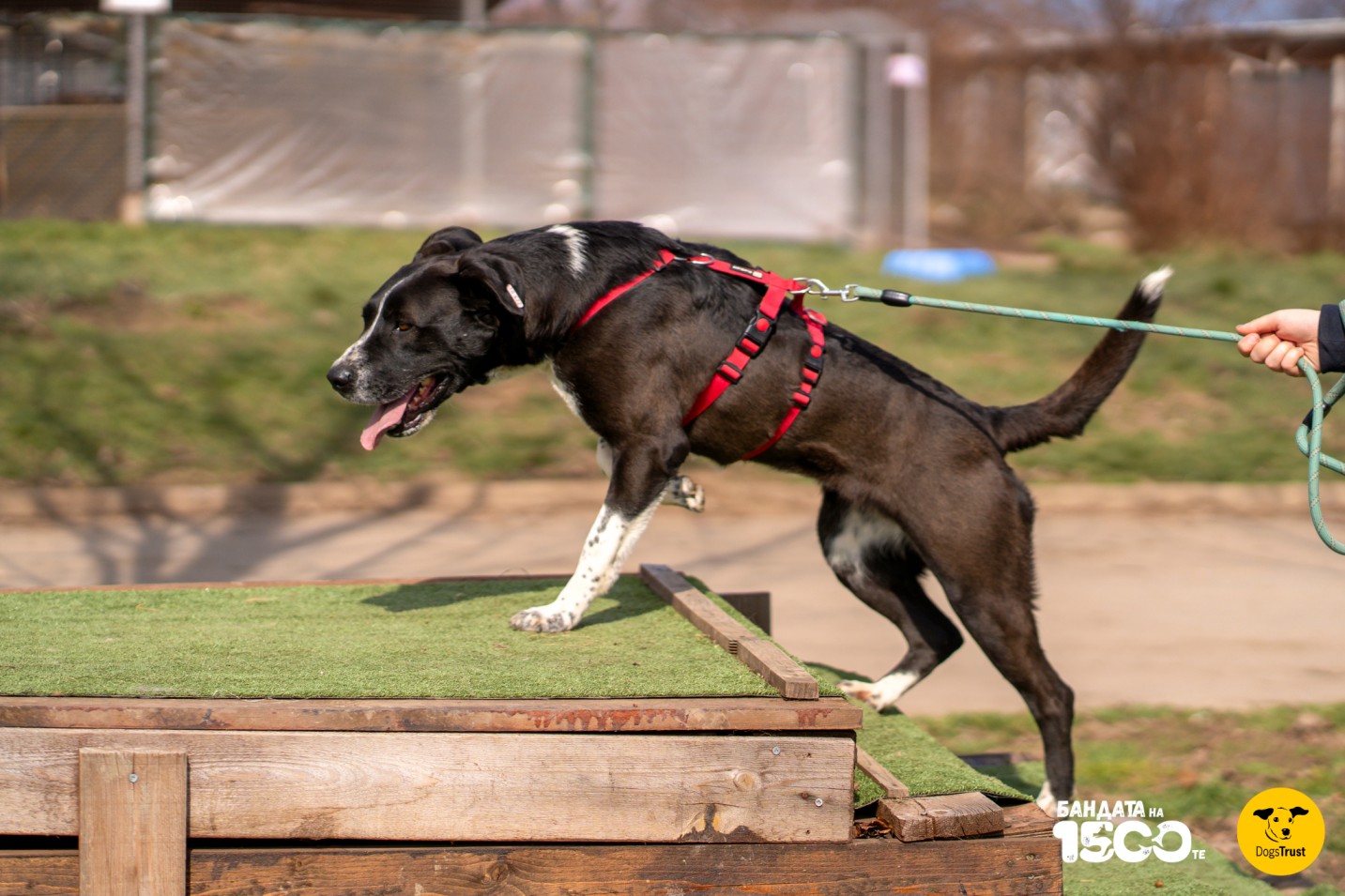 В клетката Гретел ни посреща с огромен ентусиазъм. Няма търпение доброволците да влязат, за да им се порадва — първо като скача по тях, а след това застава пред вратата в очакване да ѝ сложат повода и да излезе на дългоочакваната разходка.