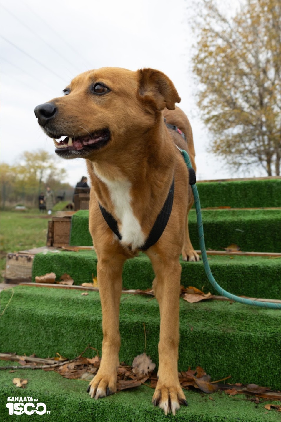 Праскова е прекрасно женско куче, на около 8 години (не ѝ личат изобщо). Тя е запазила своя млад дух. От почти 3 години се намира в приюта в Горни Богров. Това обаче не е помрачило ведрия ѝ и игрив характер.