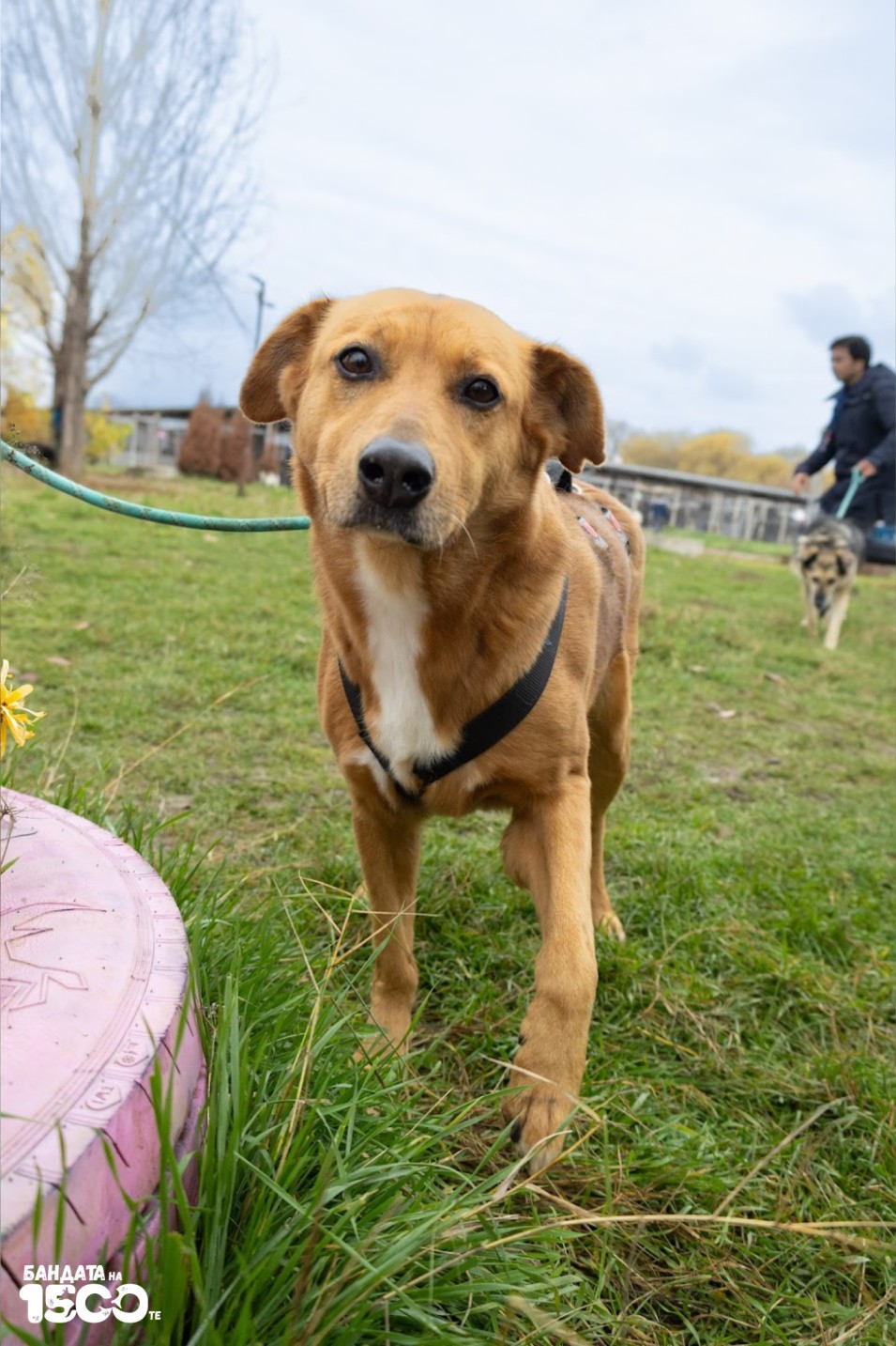 Праскова посреща доброволците в клетката с любопитство и вълнение. Понякога скача по оградата с лапи, а понякога прекалено радостните изблици на съквартирантите ѝ я притесняват и тя отстъпва назад.